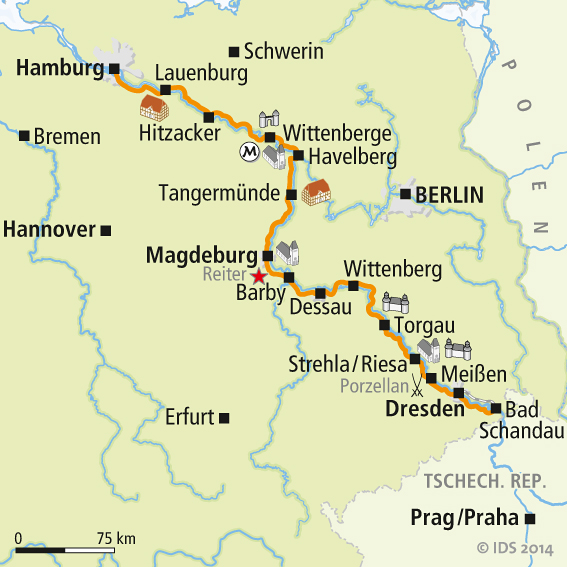 - Rio Elba – La «Elbe radweg» une Hamburgo con Bad Schanau al límite con Républica Checa y de ahí se puede continuar hasta (como nosotros hicimos) Praga. Para ver fotos del recorrido click aquí.